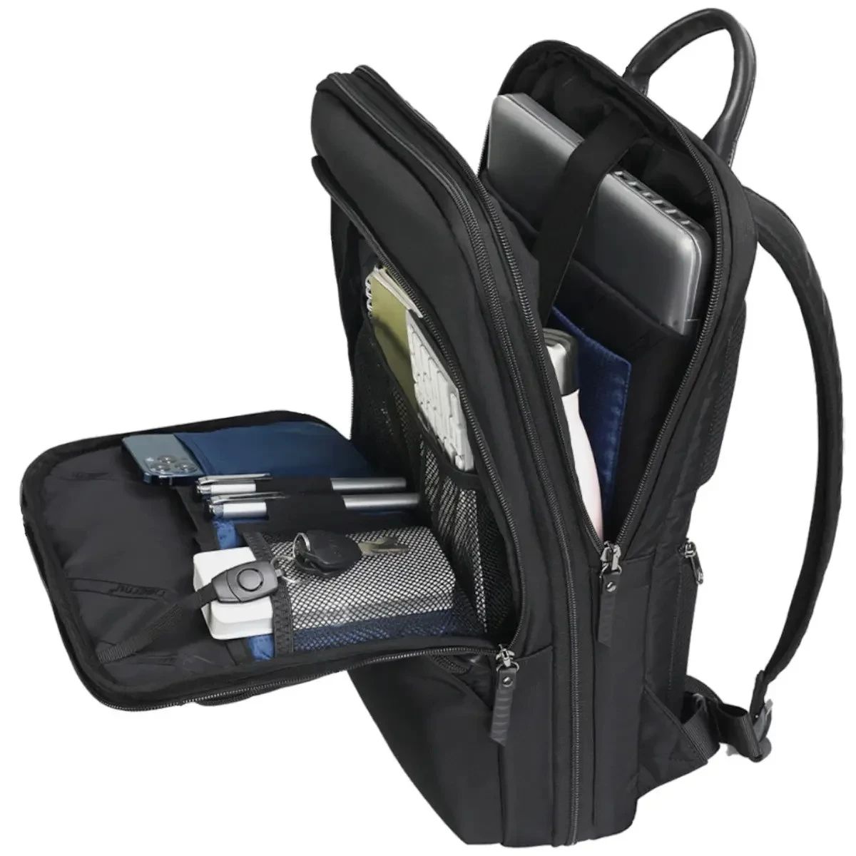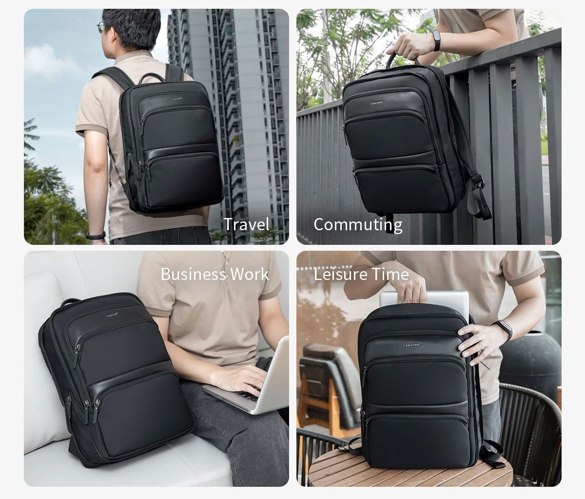 - Модель T-B9121 выполнена в лаконичном стиле, который идеально впишется как в городской образ, так и в деловую среду. Благодаря строгим линиям и компактной форме этот рюкзак выглядит стильно, но остаётся максимально функциональным. Он подходит для офиса, поездок, учёбы и командировок.