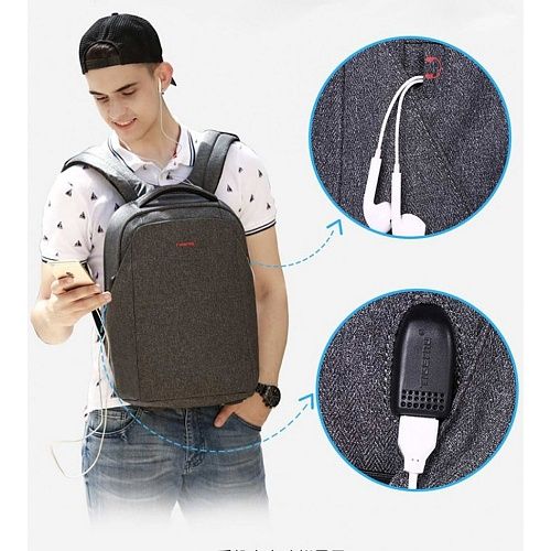 - Внешний USB-разъём и аудио-выход обеспечивают возможность зарядки устройств и подключения наушников без открытия рюкзака.