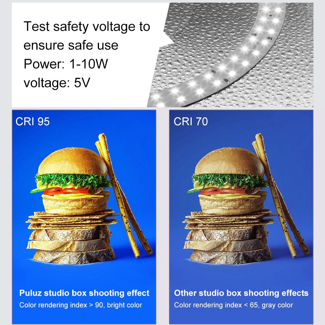 - Кольцевая LED-лента с двухрядным расположением диодов равномерно подсвечивает предмет со всех сторон, минимизируя жёсткие тени и блики. Высокий CRI > 90 корректно передаёт цвета, что важно для карточек товара.