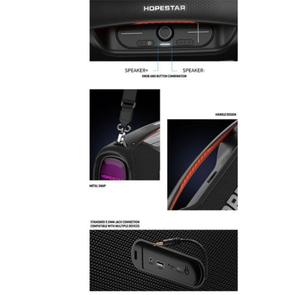 - Hopestar A60 поддерживает Bluetooth 5.1 с быстрым и стабильным соединением, а также проводное подключение через AUX, USB или TF-карту. Это делает колонку совместимой со всеми смартфонами, планшетами, ноутбуками и MP3-плеерами.