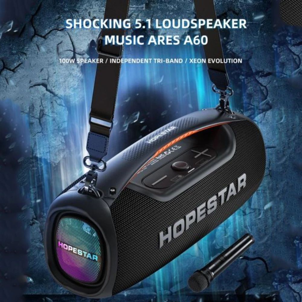 Hopestar A60 — это премиальная портативная акустическая система, созданная для любителей громкого, чистого и насыщенного звучания. Суммарная мощность в 100 Вт, глубокие басы и сбалансированные высокие частоты делают её идеальным выбором для вечеринок, выездов на природу или домашних посиделок.