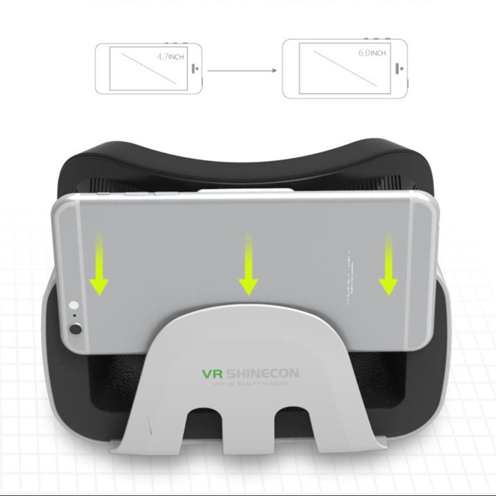 - Shinecon G03B поддерживает большинство современных смартфонов с диагональю от 4.7 до 7.0 дюймов, работающих на Android и iOS. Достаточно вставить устройство в специальный фиксатор и запустить любое приложение с поддержкой VR.