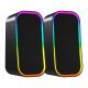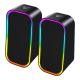 • Эти колонки выполнены в стильном корпусе со скруглёнными рёбрами и яркой RGB–окантовкой передних панелей.