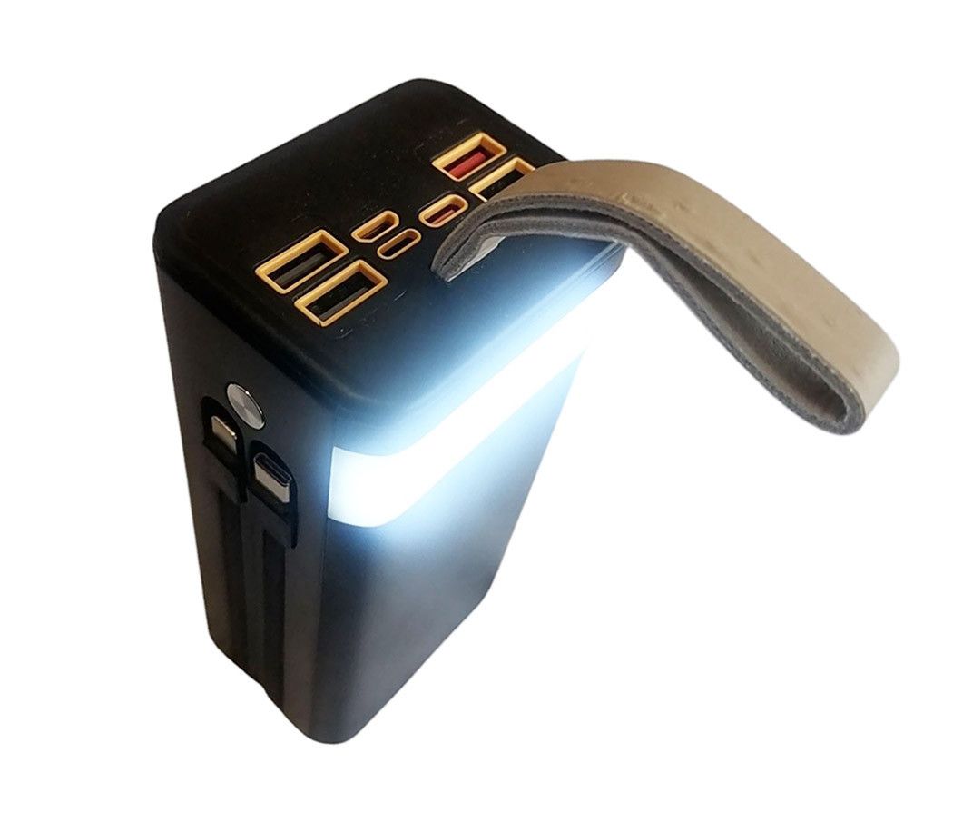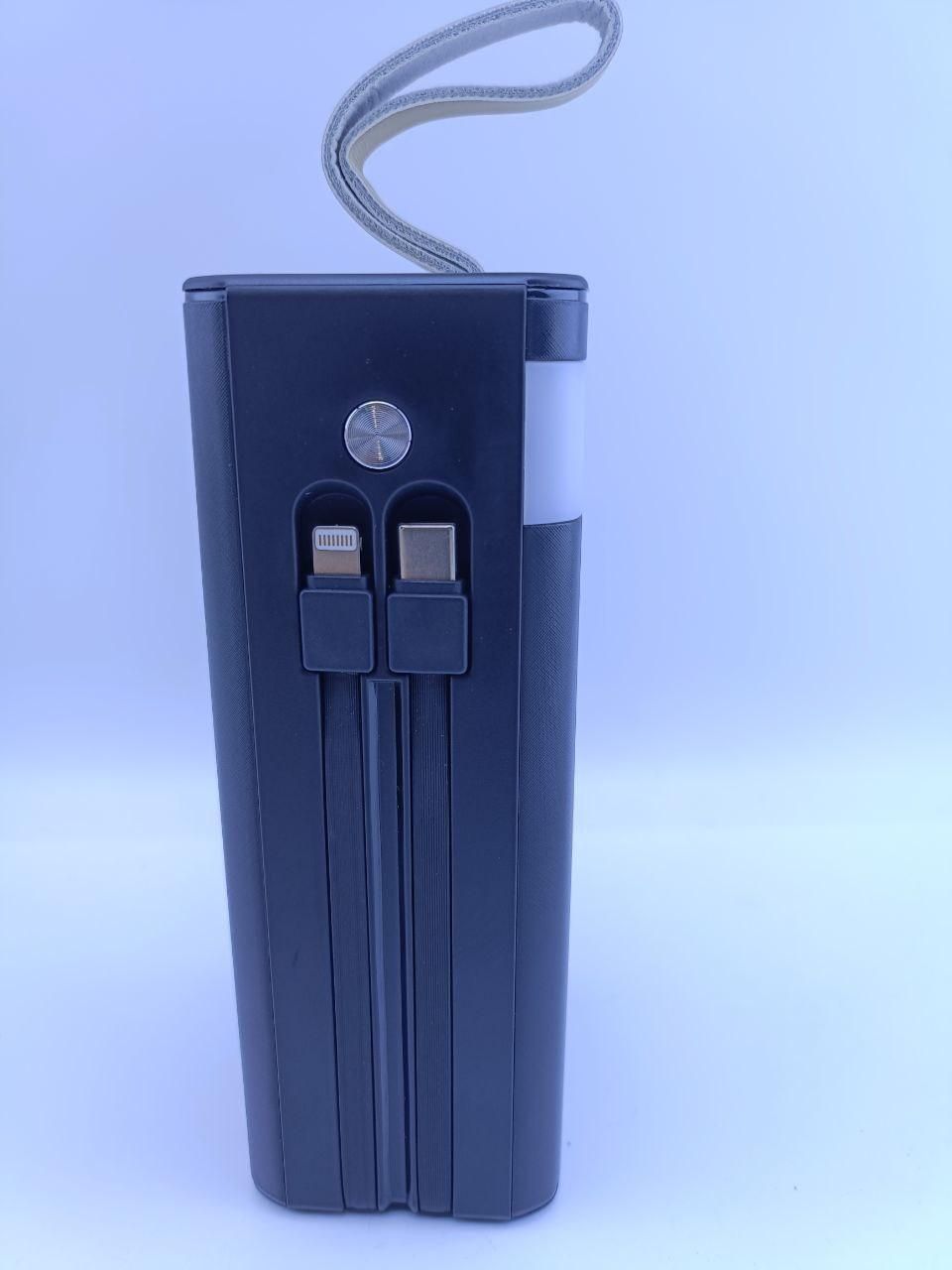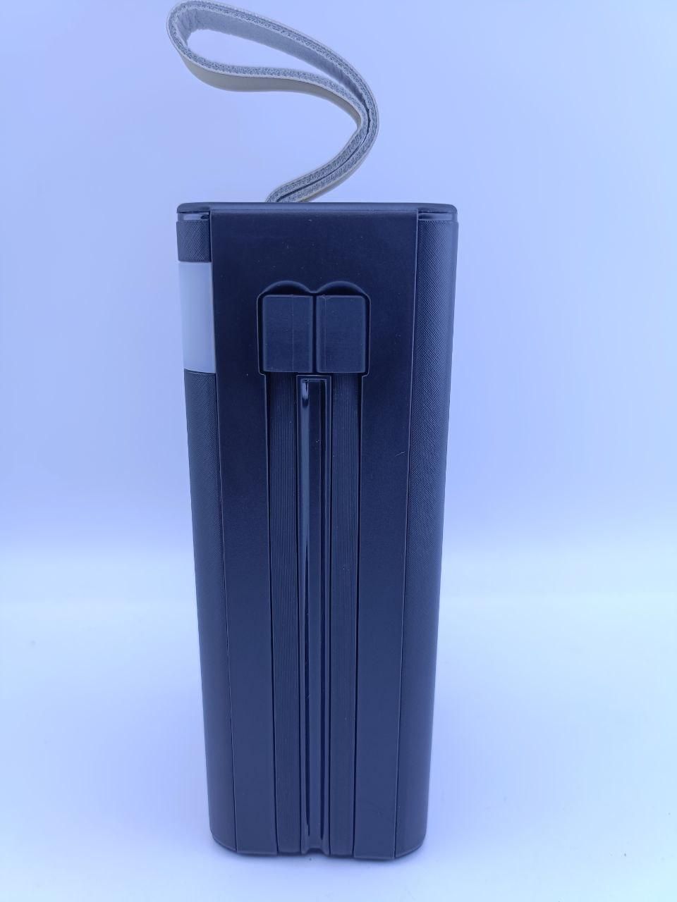- Тканевая петля позволяет переносить повербанк, подвешивать его в палатке или на ветке дерева при использовании фонаря.