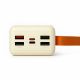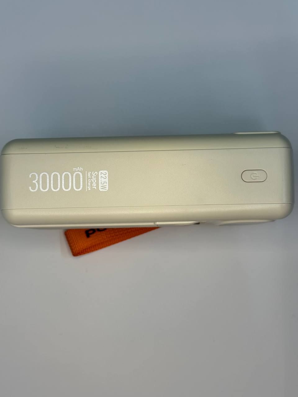 - Бежевый корпус с закругленными гранями лежит в руке уверенно и не скользит. Яркий оранжевый ремешок позволяет удобно носить повербанк, подвешивать его на рюкзак, в палатке или возле окна для лучшей работы солнечной панели.