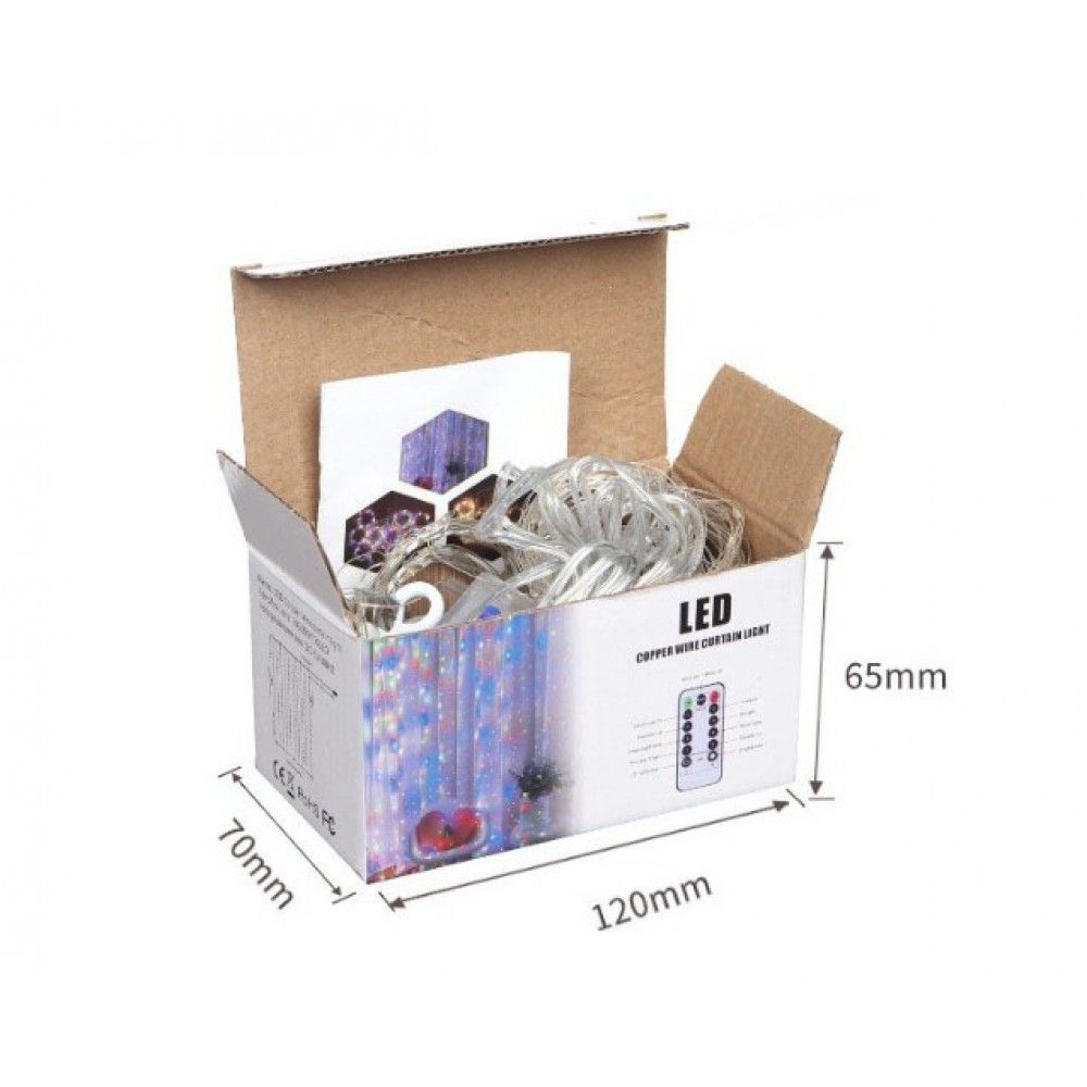 Светодиодная гирлянда USB-штора, теплая белая, 6x3 м, без крючков, 8 режимов, с пультом