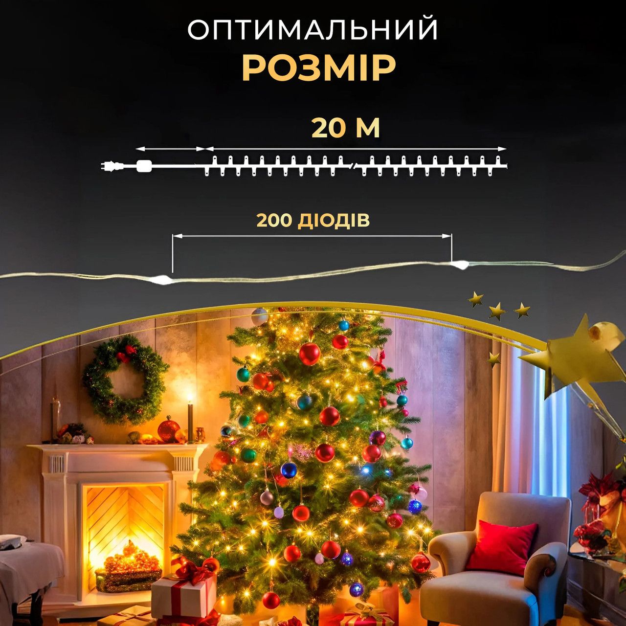 Эта светодиодная гирлянда подходит для оформления новогодней ёлки, интерьера комнат, витрин, фотозон, балконов, террас и любых праздничных композиций. Простое постоянное свечение без мигающих режимов создаёт мягкую, уютную атмосферу.