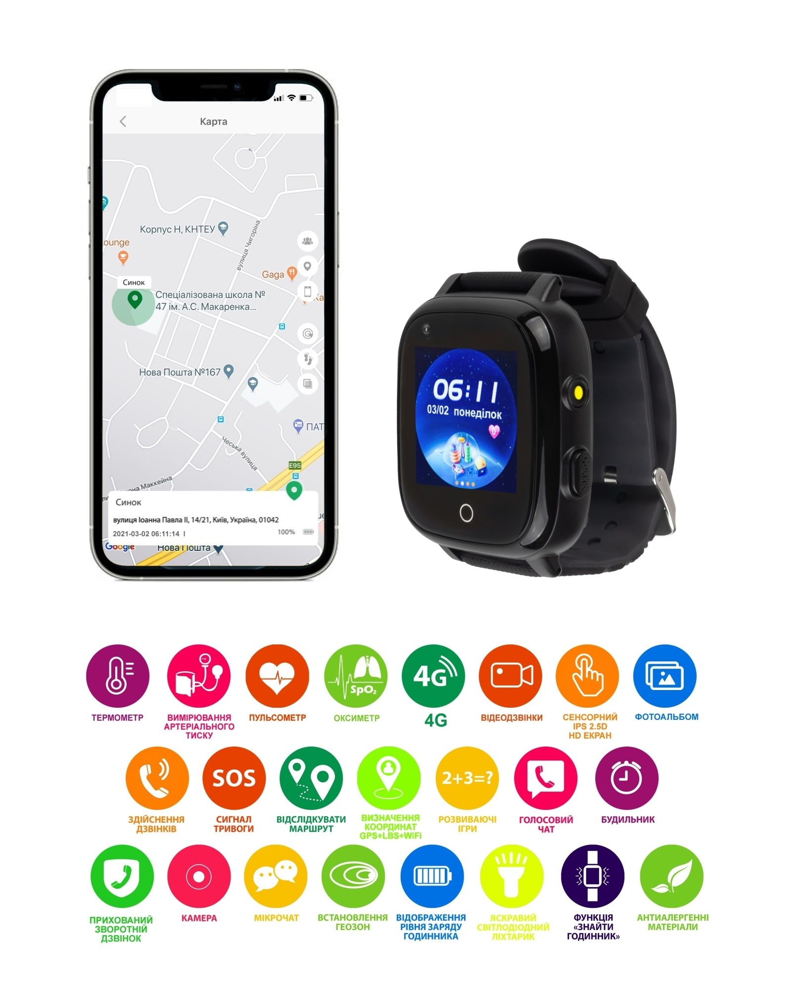Детские смарт-часы с термометром AmiGo GO005 4G WIFI Black UA UCRF
