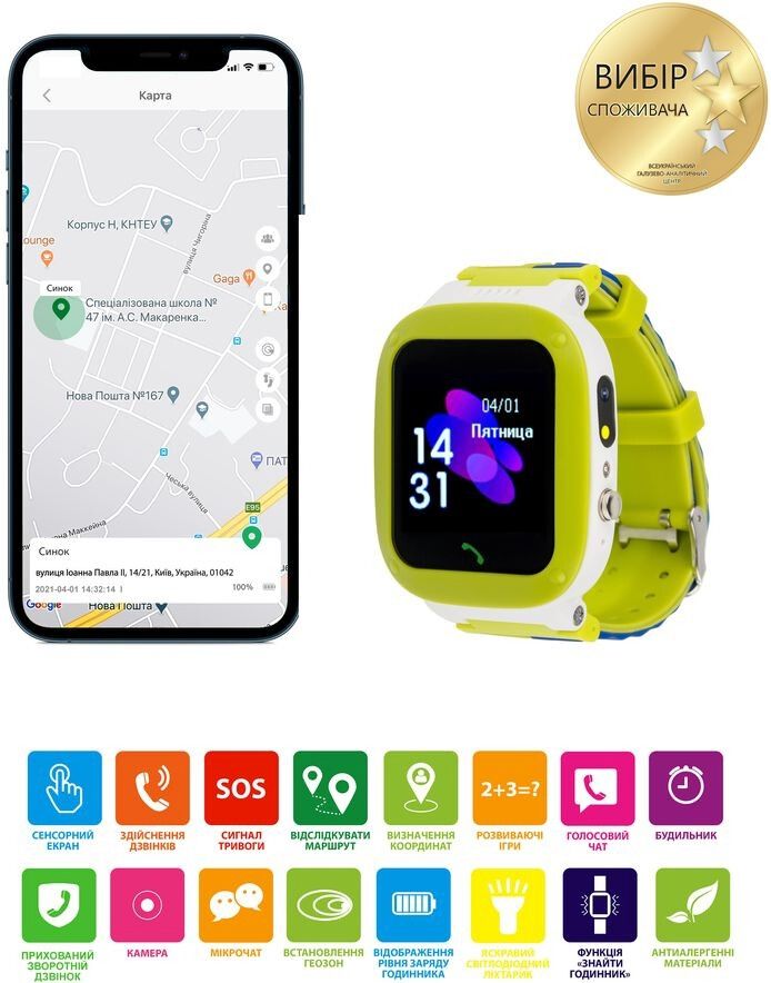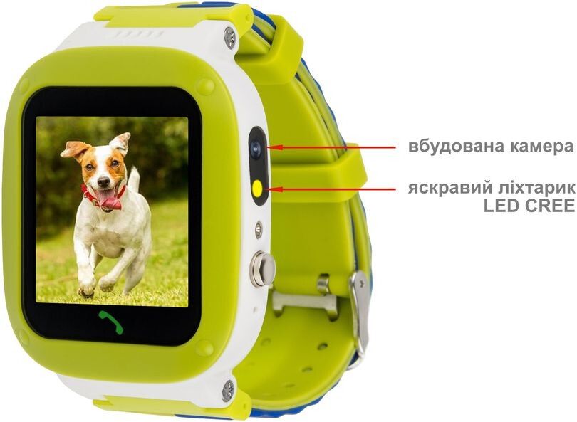 Splashproof смарт-часы для детей AmiGo GO004 с камерой и подсветкой, Зеленый UA UCRF