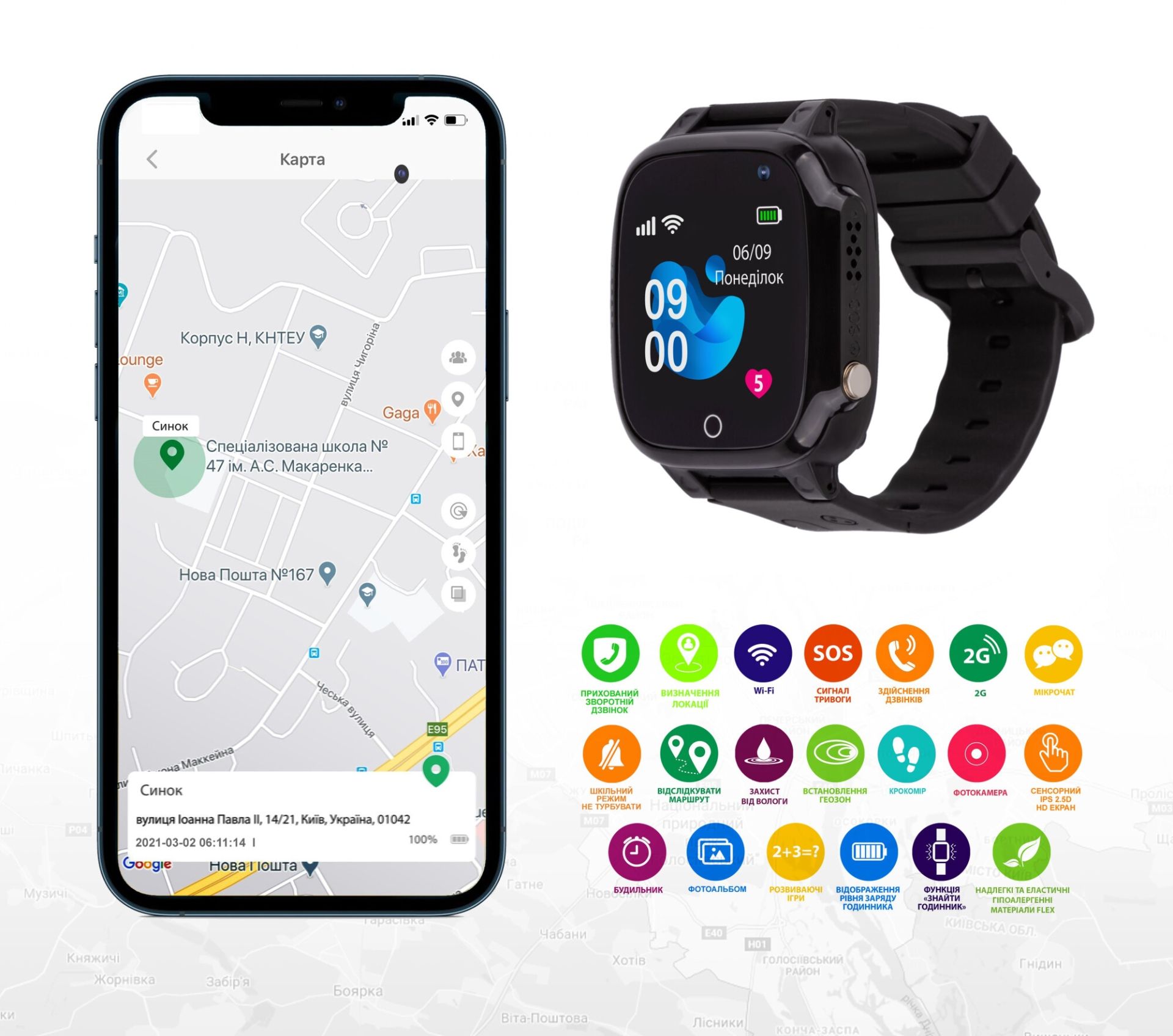 Детские смарт-часы AmiGo GO008 MILKY GPS WIFI Black UA UCRF