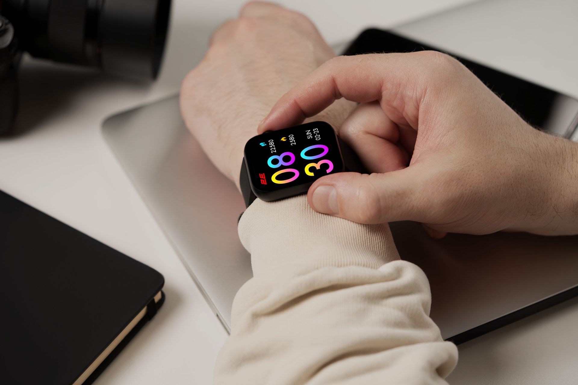 - При весе всего 52 г эти смарт-часы практически не ощущаются на руке. Лёгкий поликарбонатный корпус и мягкий силиконовый ремешок обеспечивают комфорт в течение всего дня – как во время офисной работы, так и при тренировках.