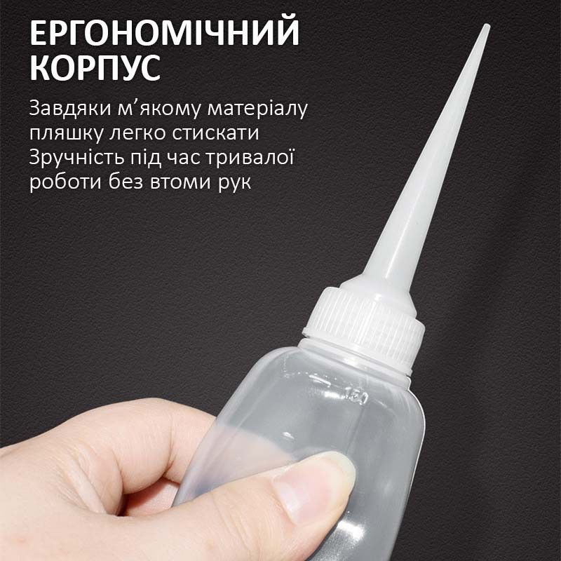 - Подходит для хранения и подачи флюса, спирта, очистителей для плат, жидких смазок и других рабочих составов в сервисных центрах, мастерских по ремонту смартфонов и электроники, лабораториях, а также в домашних условиях.