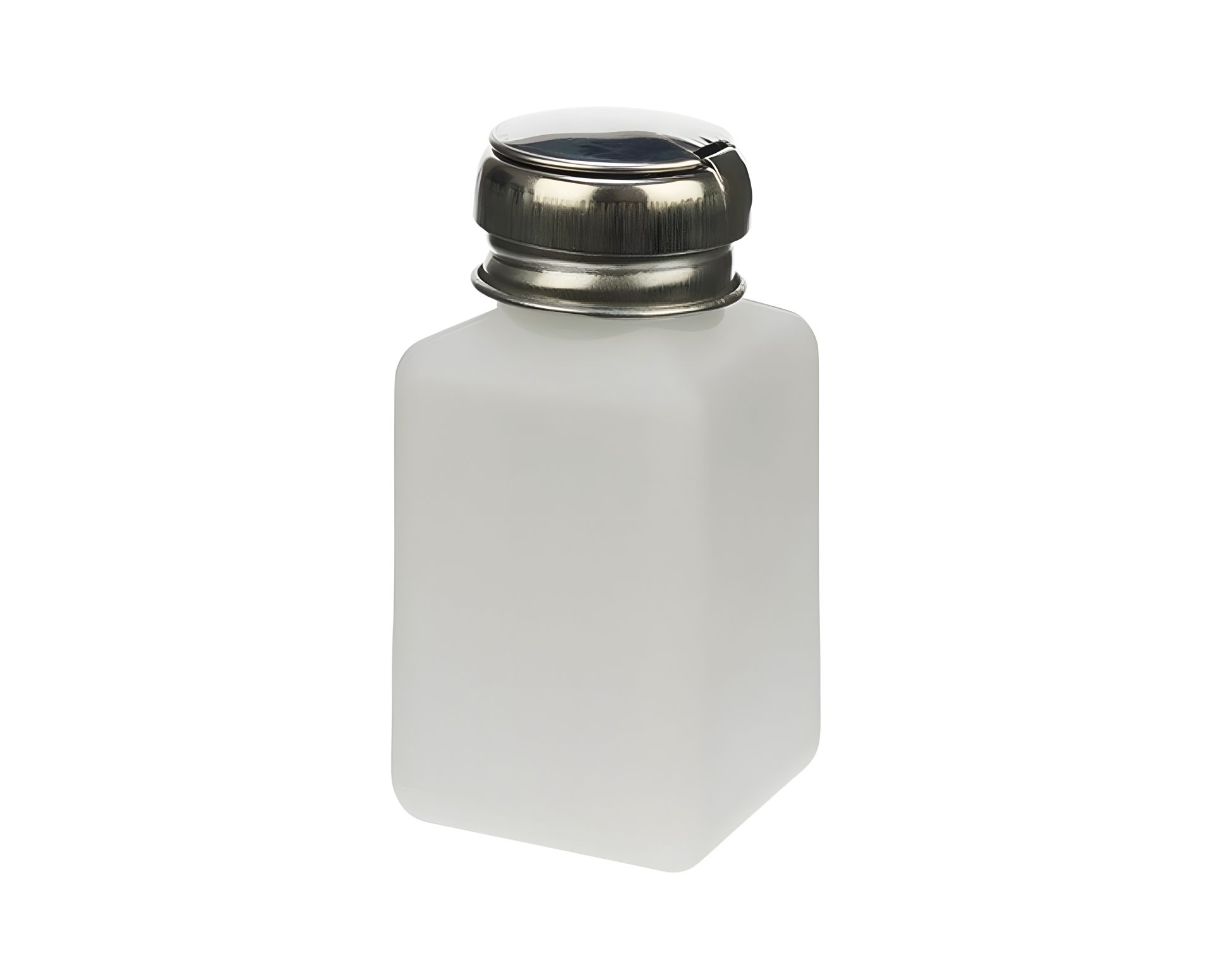 - Благодаря помповому механизму значительно уменьшается риск пролива спирта на рабочий стол, оборудование или руки. Это особенно важно при работе с электроникой, оптикой и мелкими деталями.