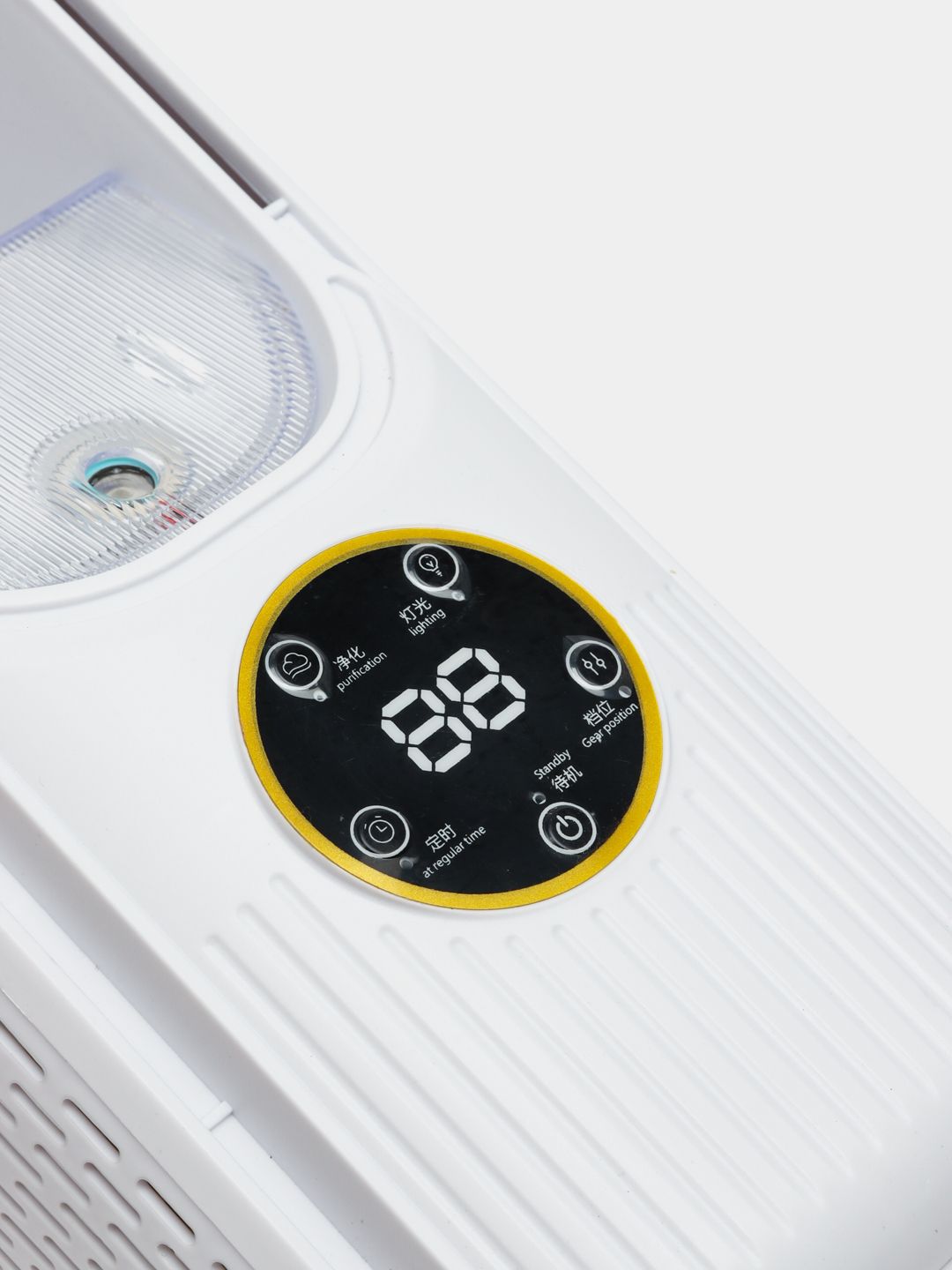 - Корпус из прочного ABS-пластика и аккуратные габариты позволяют легко разместить устройство на письменном столе, тумбочке, полке или подоконнике. Черный цвет и мягкая подсветка органично вписываются в современный интерьер.