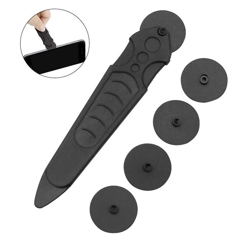 Это компактный пластиковый инструмент 2-в-1 с роликом-присоской для безопасного вскрытия корпусов и модулей смартфонов, планшетов и другой электроники без повреждения рамок и дисплея.