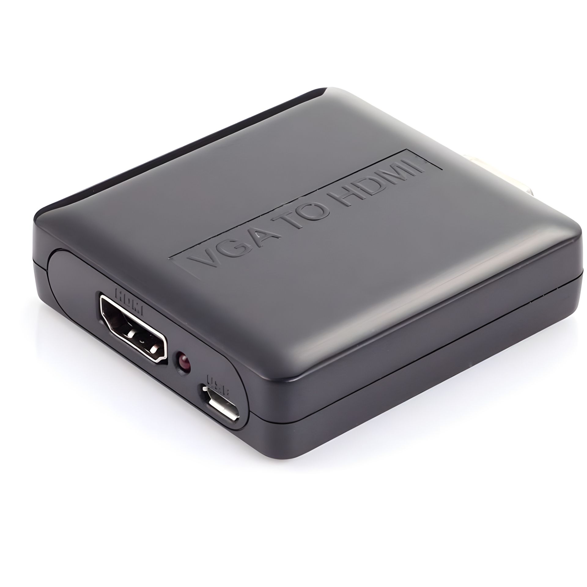 - Этот конвертер работает по принципу Plug and Play: достаточно подключить HDMI-источник, VGA-дисплей и аудиосистему, при необходимости подать питание через МicroUSB – драйверы и сложная настройка не требуются. Светодиодный индикатор на корпусе наглядно показывает, что питание и сигнал поданы корректно.