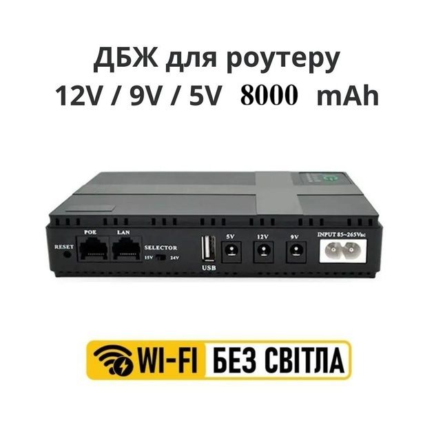 Роутер ИБП UPS 8000mAh DC1018P - 12V/ 9V/ 5V mAh 18W черный (и для других устройств DC)