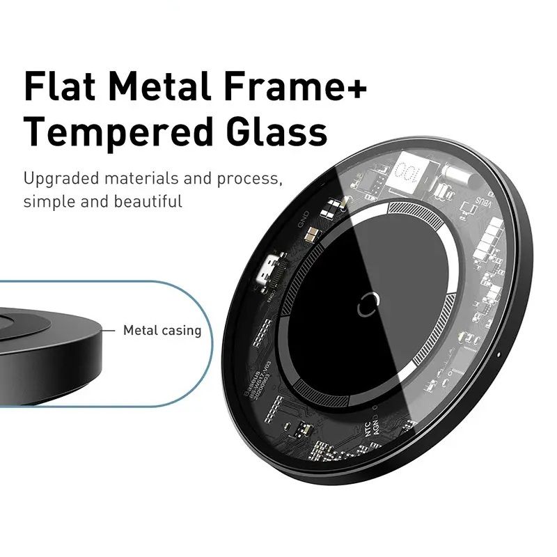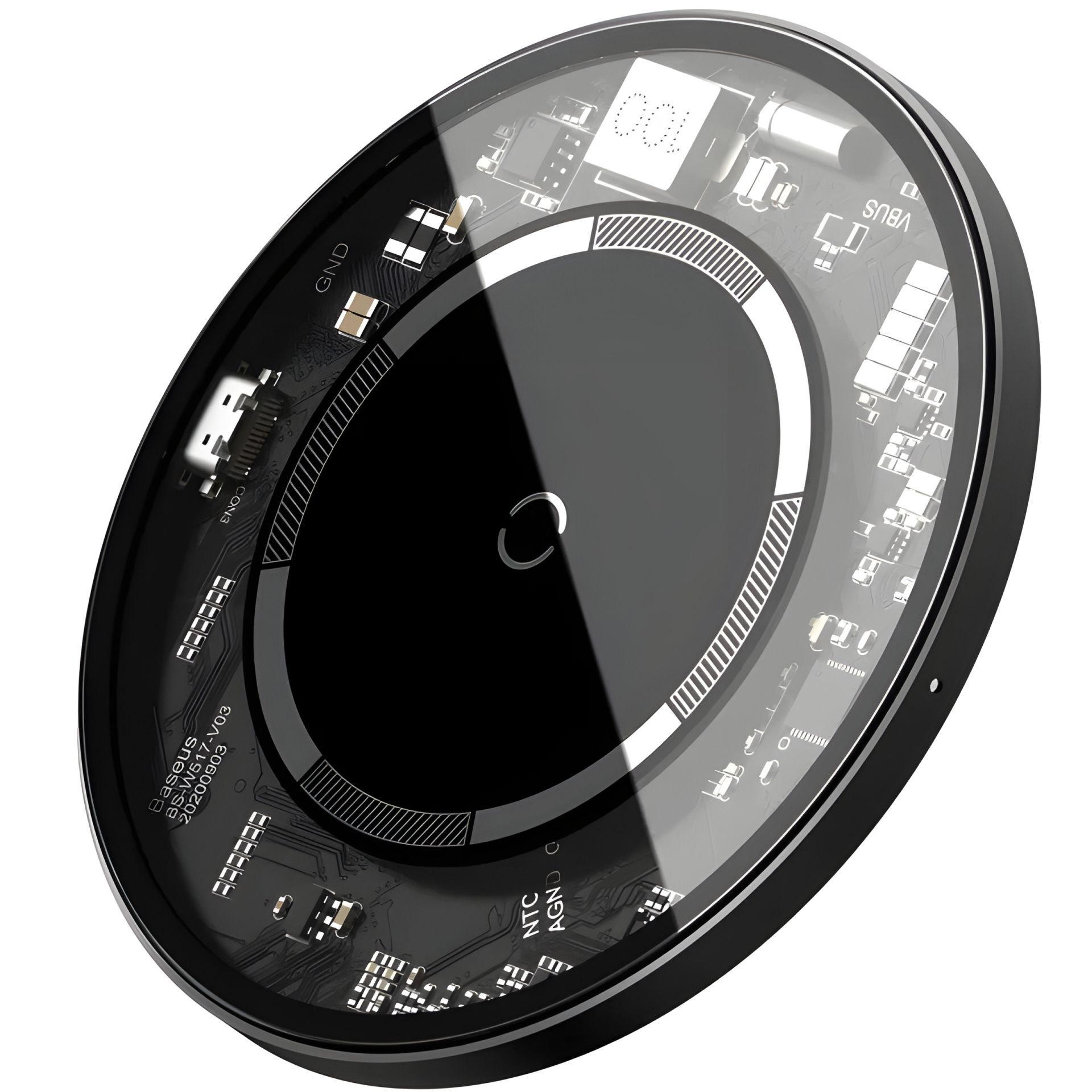 Зарядка Qi BASEUS Simple Magnetic Wireless Charger (suit for IP12) |15W| (WXJK-E02) прозрачный-чёрный