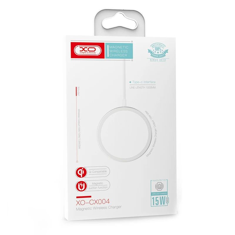 XO CX004 — это современное беспроводное магнитное зарядное устройство, предназначенное для быстрой и безопасной зарядки смартфонов без подключения кабеля непосредственно к разъему устройства. Оно работает по международному стандарту Qi и оснащено магнитной системой позиционирования, обеспечивающей точное совмещение катушек и стабильную передачу энергии.