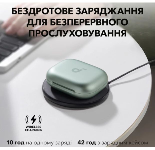 - До 10 часов работы от одного заряда и до 42 часов с кейсом позволяют пользоваться наушниками несколько дней без подзарядки. Поддержка беспроводной зарядки делает использование еще удобнее.