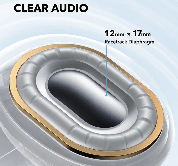 - SoundCore C40i оснащены гибкими титановыми дужками толщиной 0,5 мм с эффектом памяти формы и мягкими шарнирами из TPU. Такая конструкция выдерживает более 1000 сгибаний, точно подстраивается под форму уха и обеспечивает стабильную фиксацию даже при интенсивных движениях, беге или тренировках.