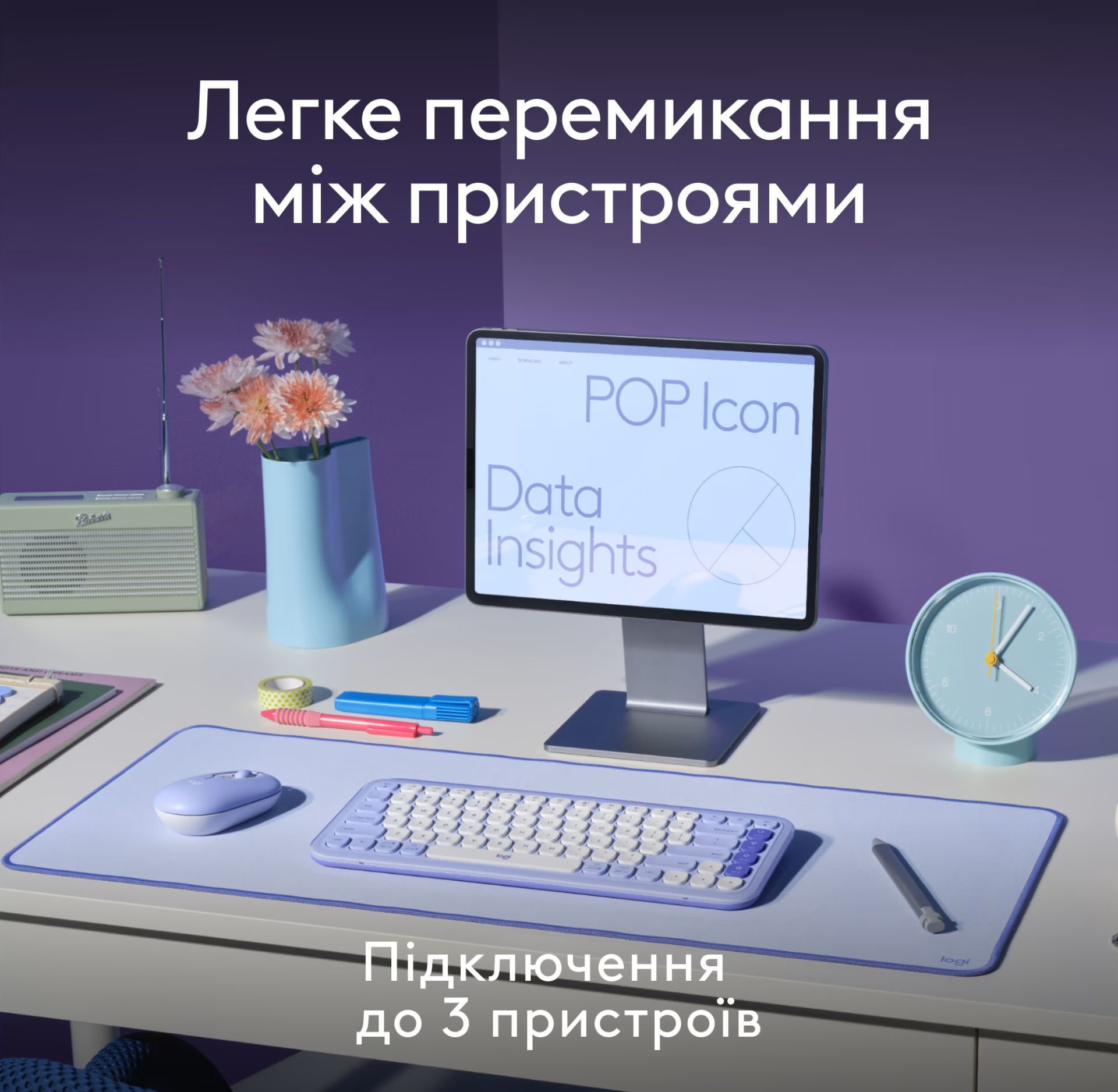 Комплект (клавиатура + мышь) Logitech POP Icon Combo — это стильное и функциональное беспроводное решение для работы, учебы и повседневного использования. Яркий дизайн, тихая работа, интеллектуальные функции и широкие возможности персонализации делают этот комплект не только удобным инструментом, но и выразительным элементом рабочего пространства.
