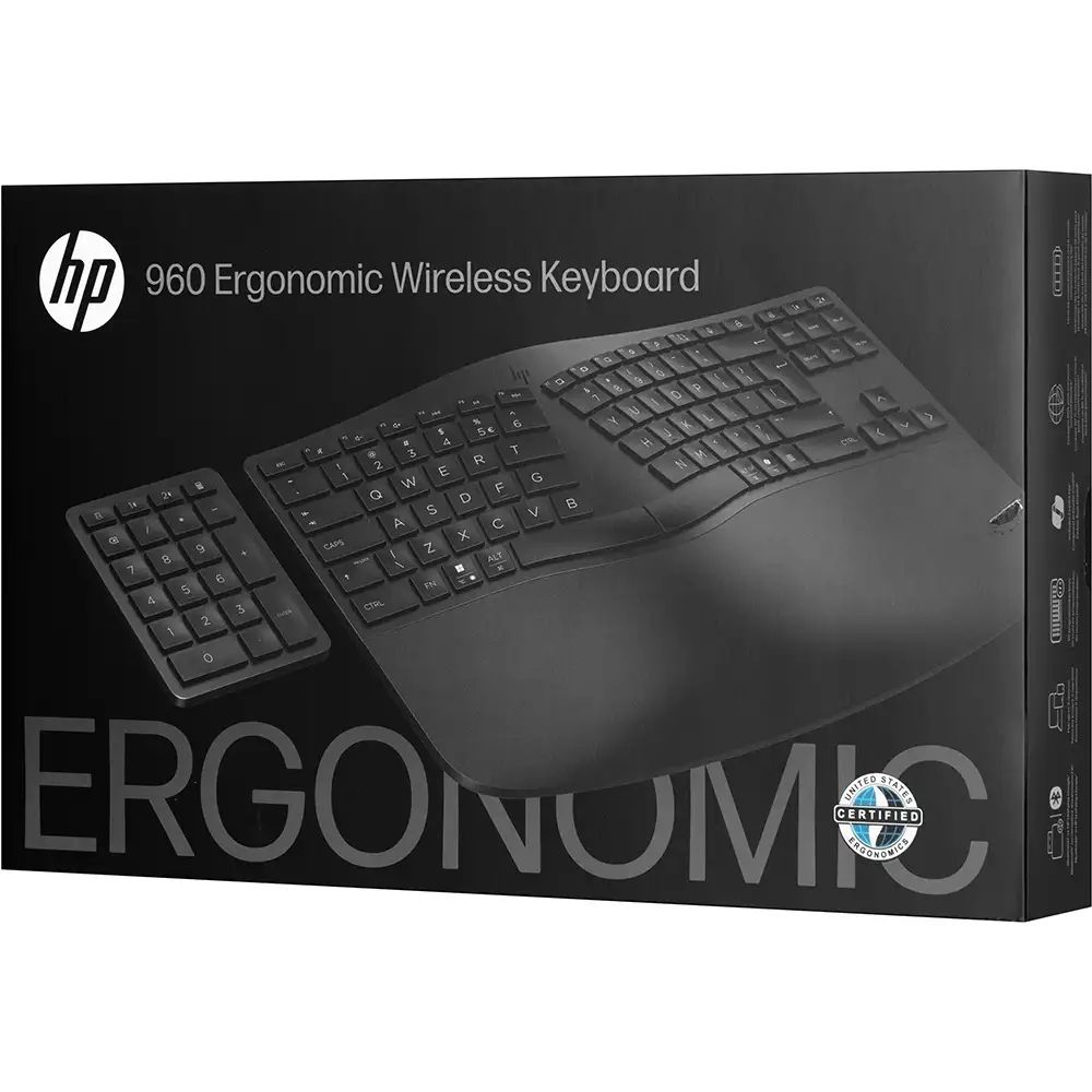 HP 960 Ergonomic Wireless — это премиальная эргономичная беспроводная клавиатура с отдельной цифровой панелью, разработанная для длительной и продуктивной работы. Модель создана с учетом научных исследований в области эргономики и сертифицирована Human Factors и U.S. Ergonomics, что делает ее отличным выбором для профессионалов, работающих за компьютером много часов подряд.