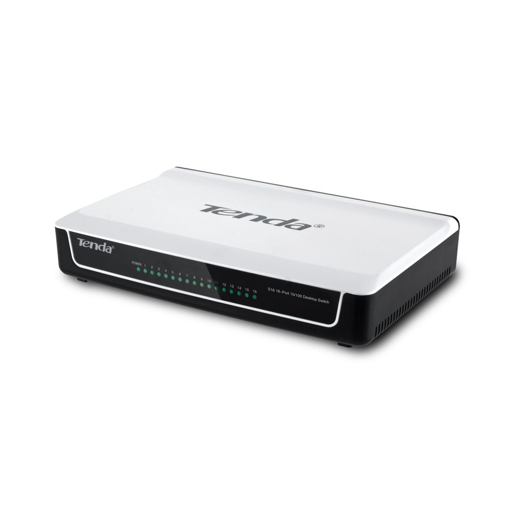 Tenda S16 — это 16-портовый неуправляемый Fast Ethernet коммутатор (10/100 Мбит/с), предназначенный для домашних сетей, интернет-кафе и малых офисов, обеспечивающий Plug&Play подключение, высокую пропускную способность до 3.2 Гбит/с в неблокирующем режиме (до 200 Мбит/с на порт), автоопределение MDI/MDI-X, функцию Store-and-Forward и вместительную таблицу MAC-адресов (4K), что гарантирует стабильную и быструю работу сети без коллизий.