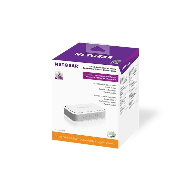 NETGEAR GS605 — это компактный неуправляемый 5-портовый гигабитный коммутатор, предназначенный для быстрого и простого расширения проводной сети дома или в малом офисе. Устройство обеспечивает стабильное соединение на скорости до 1 Гбит/с на каждом порту, работает по принципу Plug-and-Play и не требует какой-либо настройки.
