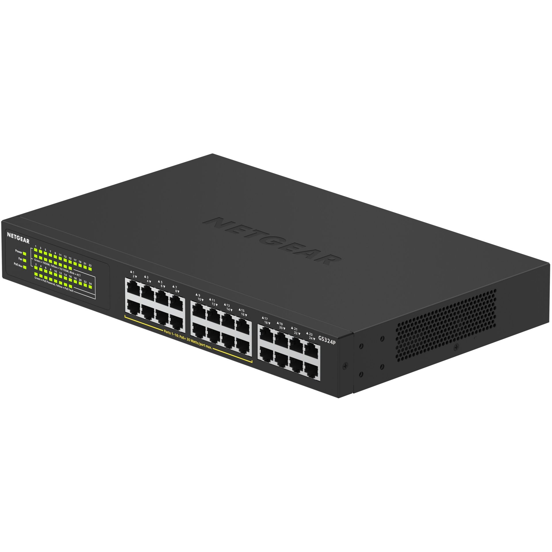NETGEAR GS324P — это неуправляемый гигабитный коммутатор с поддержкой PoE+, предназначенный для построения надёжной и производительной сети в офисах, коммерческих помещениях, системах видеонаблюдения и Wi-Fi-инфраструктуры. Устройство оснащено 24 гигабитными портами, из которых 16 поддерживают стандарт PoE+ с общим бюджетом питания до 190 Вт, позволяя передавать данные и питание по одному Ethernet-кабелю.