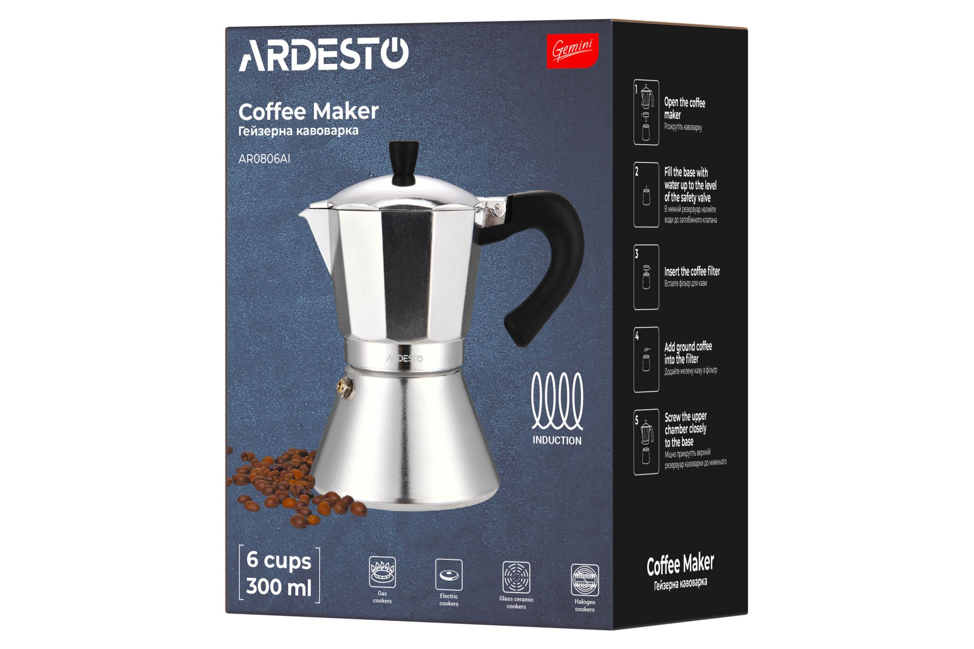 Гейзерная кофеварка Ardesto Gemini Piemonte, AR0806AI