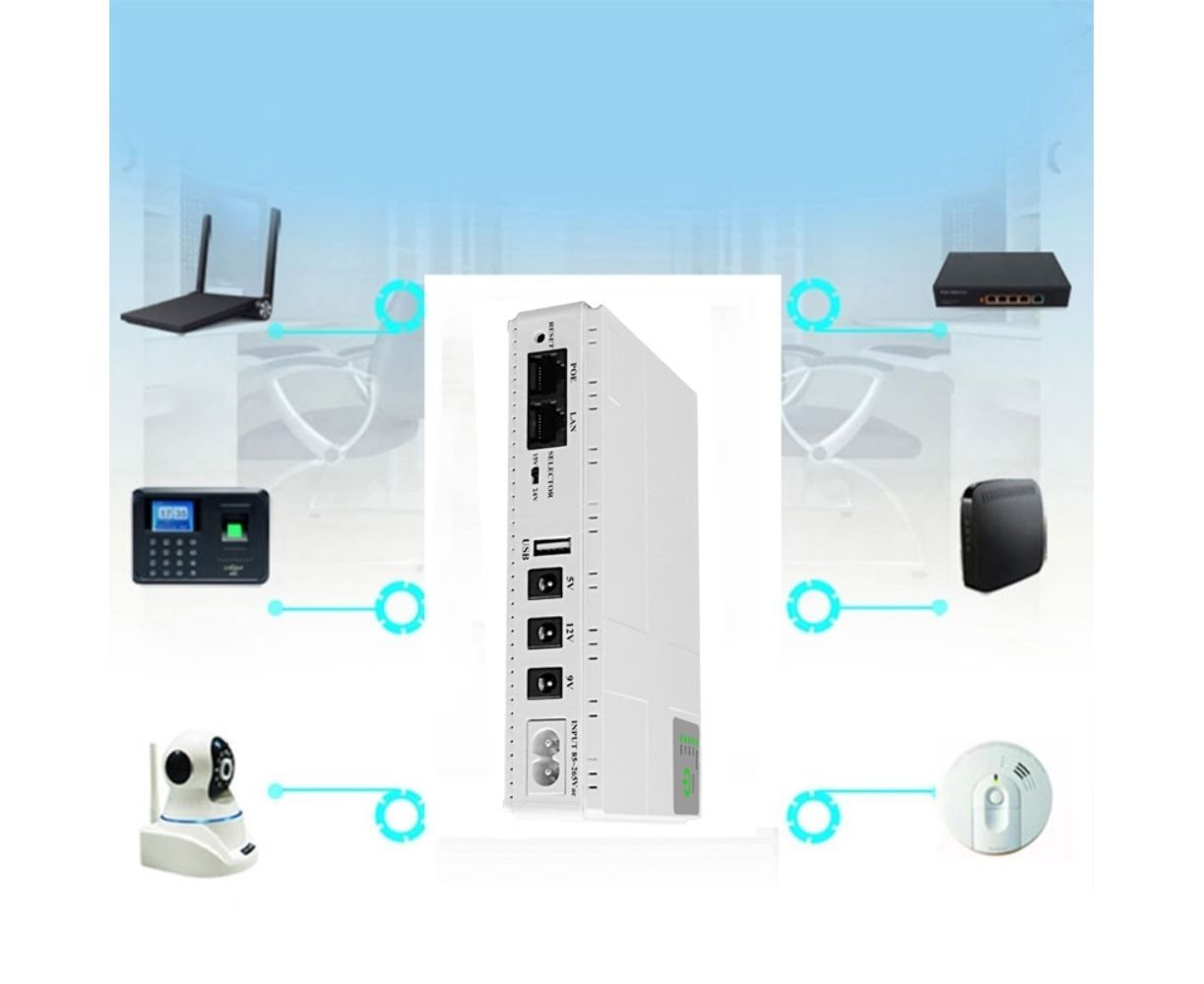 - Этот ИБП обеспечивает стабильное питание для роутеров, модемов, терминалов и других устройств, повышая их надежность и работоспособность в условиях отсутствия электроэнергии.