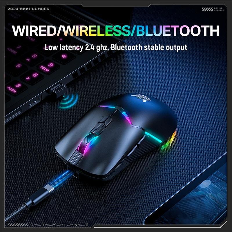Мышь Onikuma Onikuma RGB Tri-Mode Gaming Mouse CW928 |2.4G/BT/Type-C, 800-12000DPI| black
