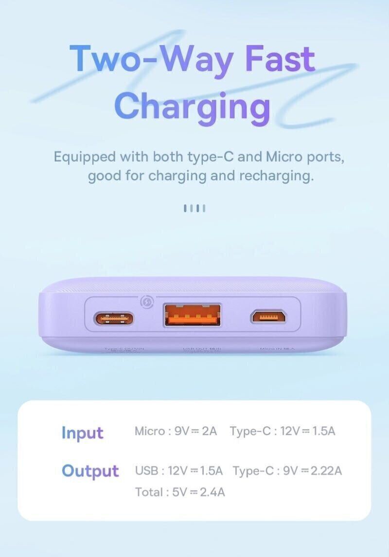 Baseus Airpow — это компактный, стильный и высокоэффективный повербанк, предназначенный для быстрой и безопасной зарядки современных мобильных устройств. Эта модель сочетает в себе оптимальную ёмкость, поддержку популярных стандартов быстрой зарядки и продуманный эргономичный дизайн, что делает её отличным выбором для повседневного использования, поездок и путешествий.
