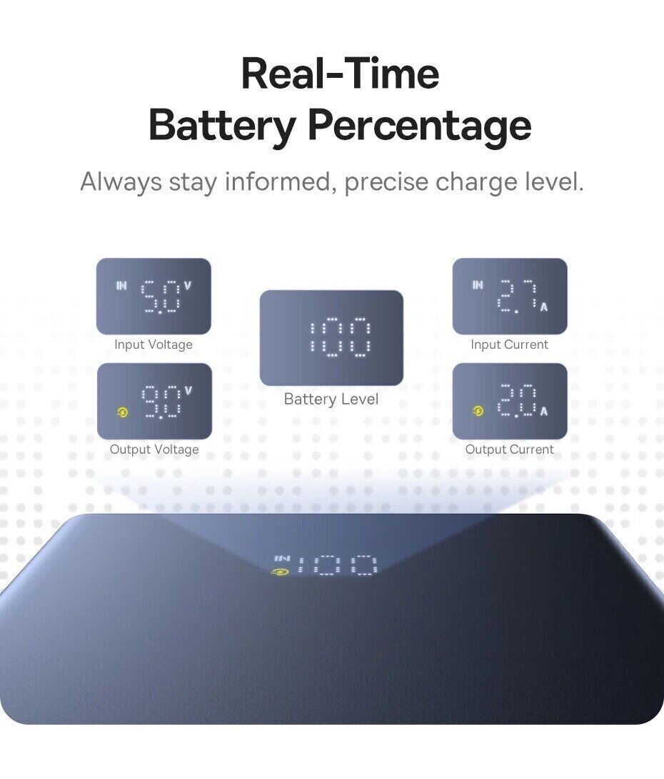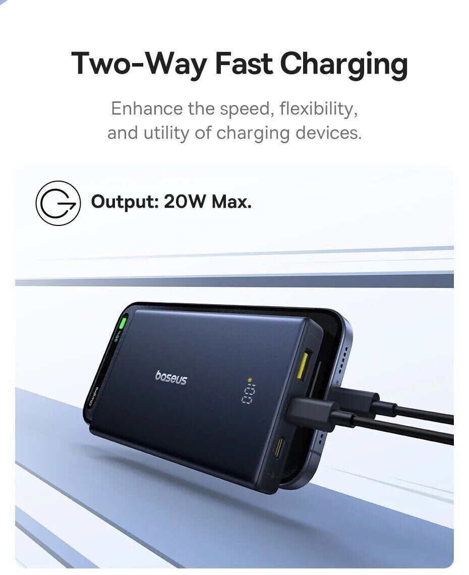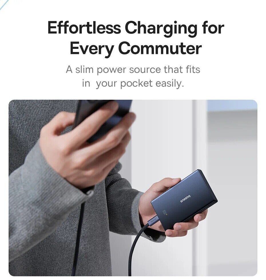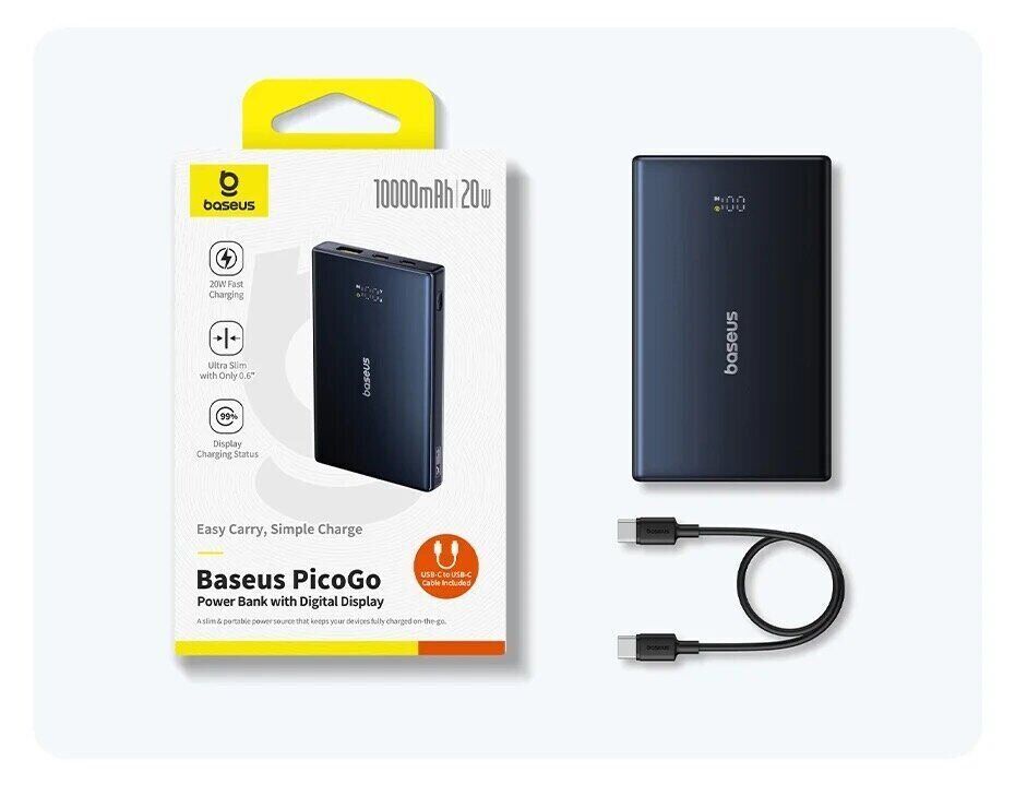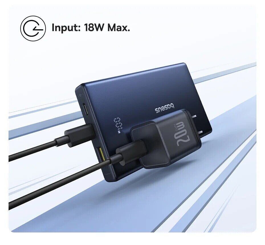 Baseus PicoGo 20W — это ультратонкий, легкий и функциональный повербанк, созданный для активного повседневного использования, путешествий и работы вне дома. Он сочетает в себе высокую ёмкость 10000 мА·ч, быструю зарядку Power Delivery мощностью до 20 Вт, универсальный набор портов и информативный цифровой дисплей, позволяющий полностью контролировать процесс зарядки.