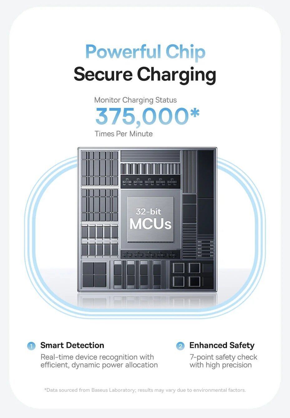 - Поддержка выходной мощности до 45 Вт позволяет быстро заряжать не только смартфоны, но и более требовательные устройства, включая планшеты и другие гаджеты с поддержкой Power Delivery.