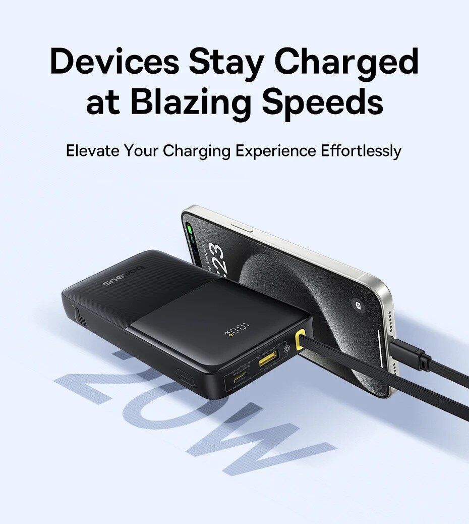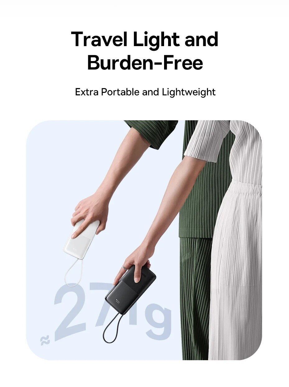 Baseus Bipow 2 — это компактный и функциональный повербанк с ёмкостью 10000 мА·ч, встроенным кабелем с разъемом Type-C и поддержкой современных технологий быстрой зарядки. Модель разработана для активного повседневного использования, путешествий и ситуаций, когда необходим надежный запас энергии для смартфона и других гаджетов. Цифровой дисплей, интеллектуальная система защиты и универсальная совместимость делают этот повербанк удобным и безопасным решением на каждый день.