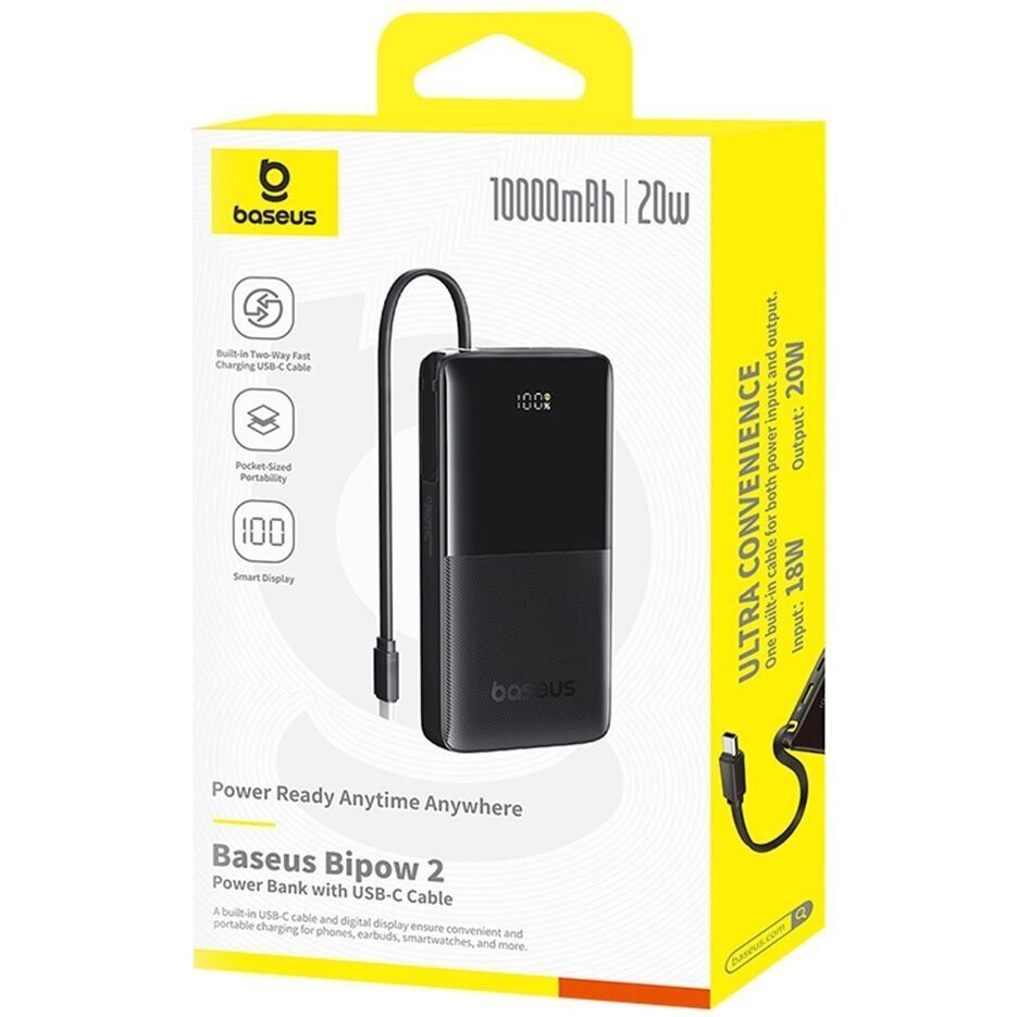 Повербанк Baseus Bipow 2 Digital Display With Built-in USB-C Cable 10000mah 20W Black P10077101113-00