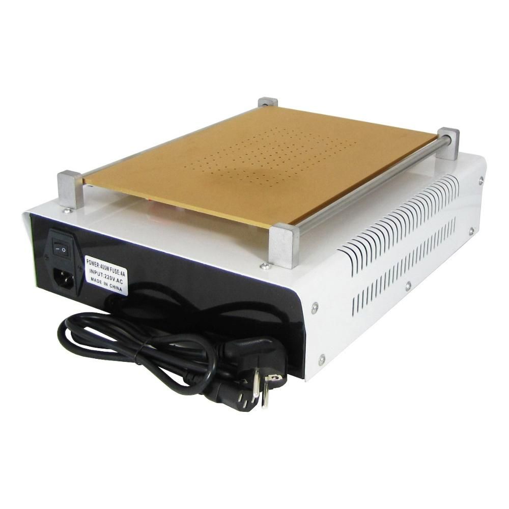 - Рабочая поверхность размером 30 × 20 см подходит для обработки дисплеев с диагональю до 14 дюймов, включая смартфоны, планшеты и некоторые лэптопы. Это делает устройство универсальным инструментом для сервисных мастерских.
