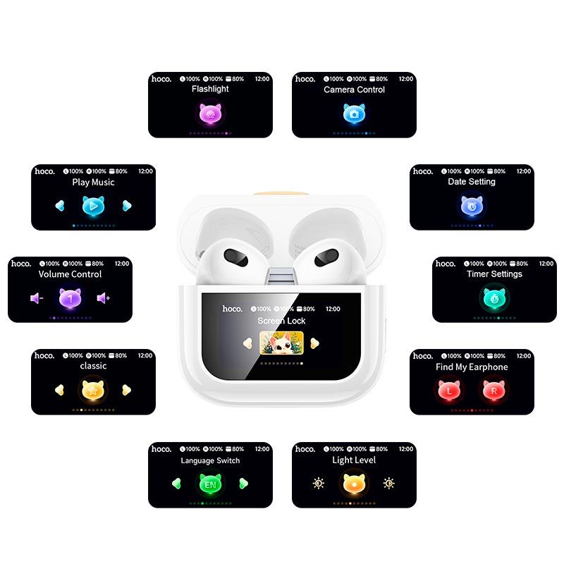 HOCO EW87 — этосовременныебеспроводные TWS-наушники, сочетающие в себепередовыетехнологии Bluetooth 5.4, интеллектуальноесенсорноеуправление и уникальныйинформативныйдисплей, встроенныйпрямо в зарядныйкейс. Модельориентировананапользователей, которыеценятудобство, функциональность и стильныйвнешнийвид в повседневномиспользовании.