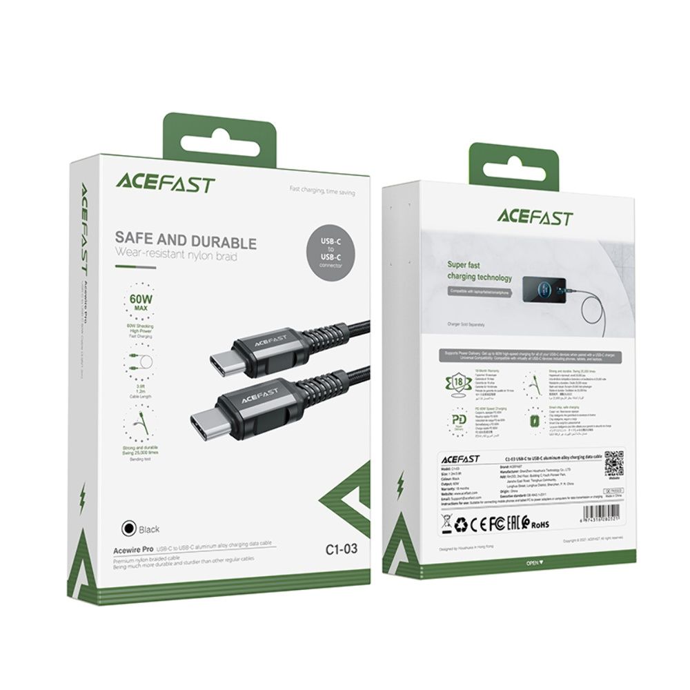 Кабель Acefast C1-03 Type-C to Type-C PD 60W 1.2m черный