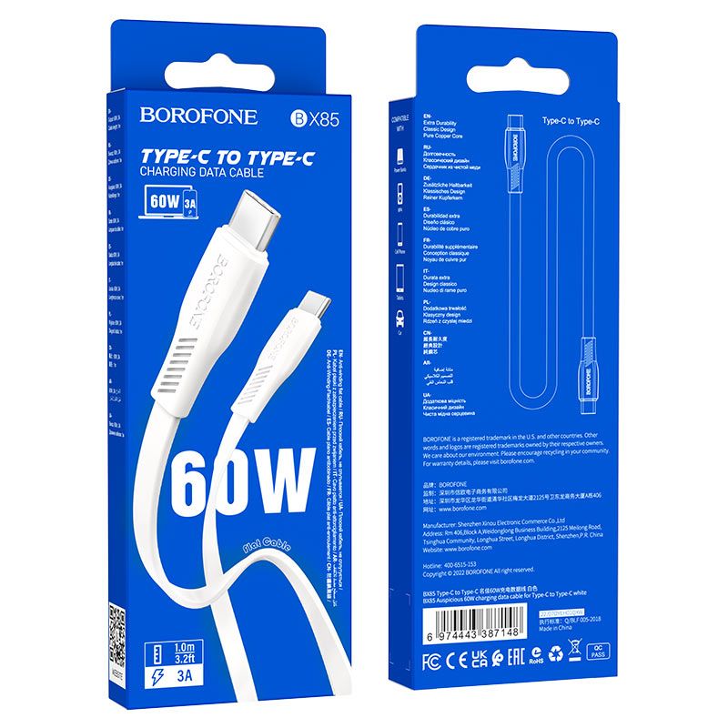 Кабель Borofone BX85 Type-C to Type-C PD 60W 1m белый