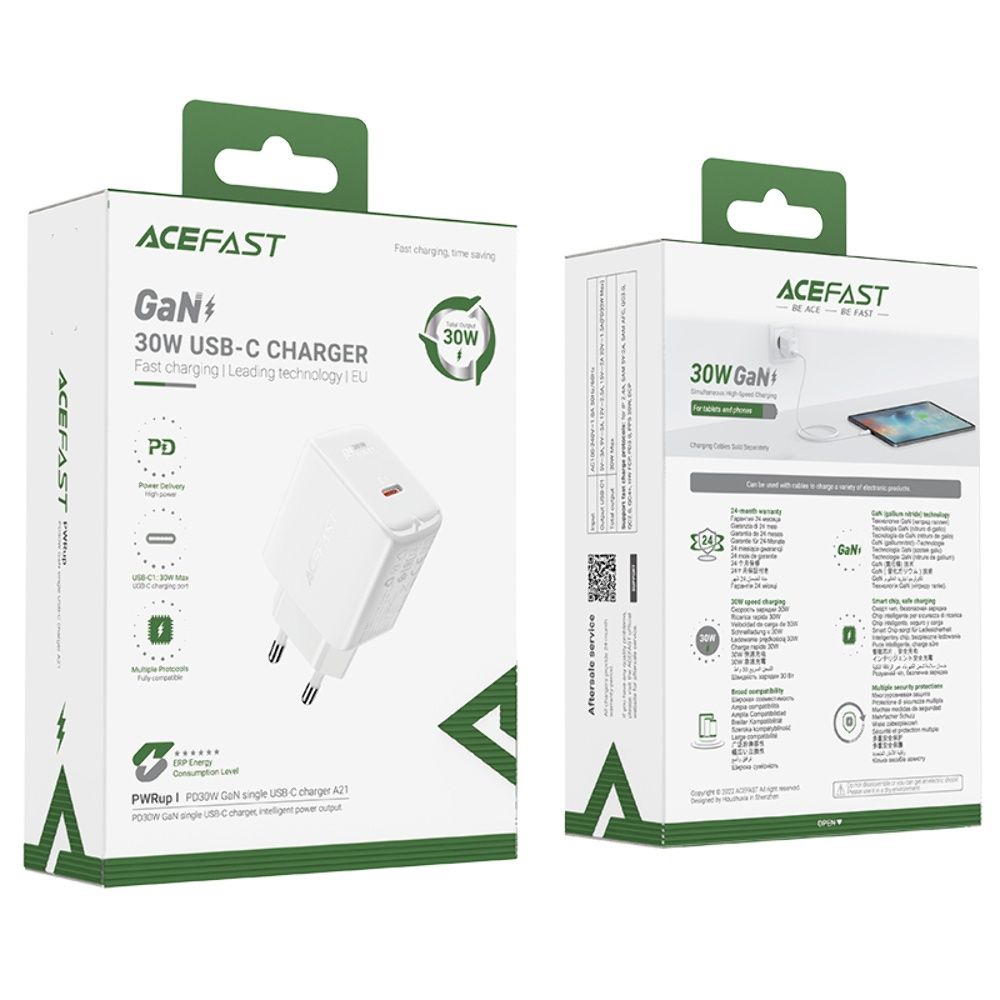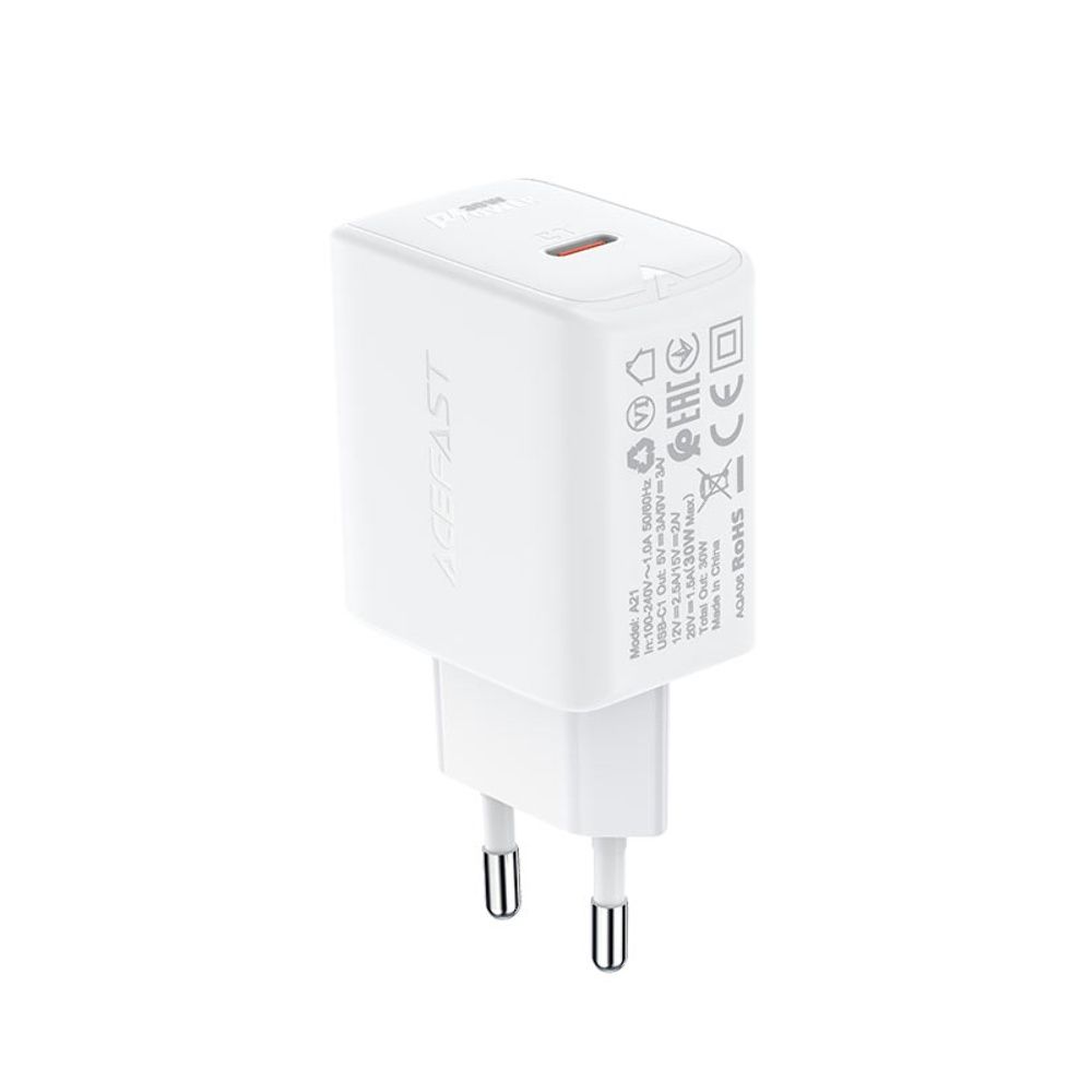 Сетевое зарядное устройство Acefast A21 Type-C QC PD 30W белое