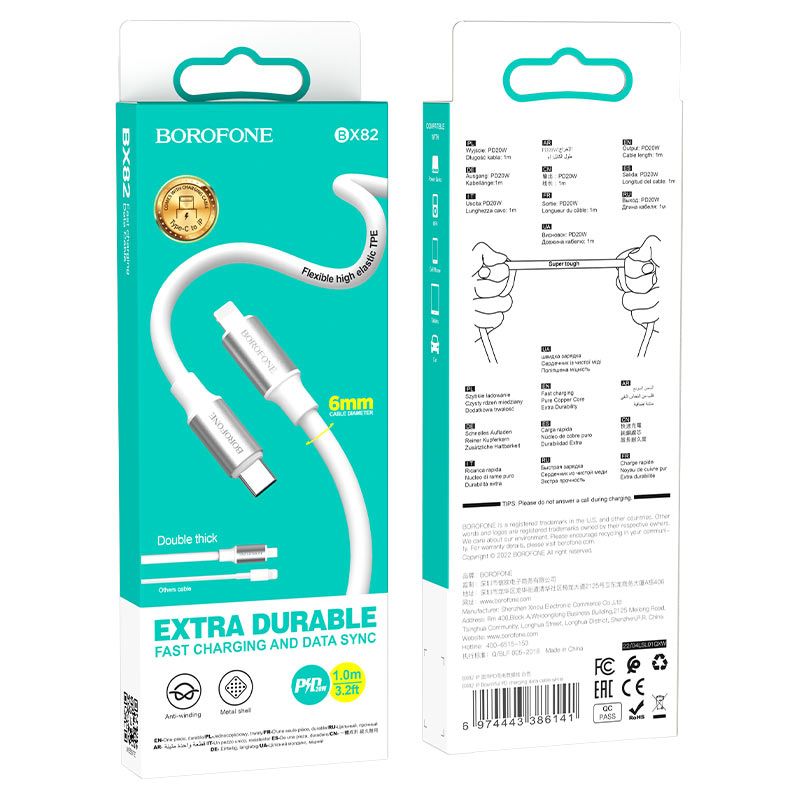 Кабель BOROFONE BX82 Type-C to Lightning предназначен для быстрой зарядки и стабильной передачи данных устройств Apple с разъёмом Lightning. Эта модель поддерживает технологию Power Delivery с мощностью до 20 Вт и отличается усиленной конструкцией с увеличенным диаметром кабеля. Использование прочных материалов обеспечивает высокую износостойкость, надежность соединения и длительный срок службы даже при интенсивной эксплуатации.