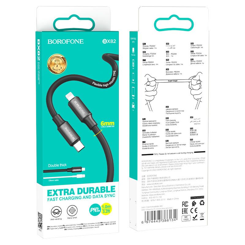 Кабель BOROFONE BX82 Type-C to Lightning предназначен для быстрой зарядки и стабильной передачи данных устройств Apple с разъёмом Lightning. Эта модель поддерживает технологию Power Delivery с мощностью до 20 Вт и отличается усиленной конструкцией с увеличенным диаметром кабеля. Использование прочных материалов обеспечивает высокую износостойкость, надежность соединения и длительный срок службы даже при интенсивной эксплуатации.