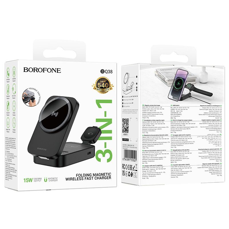 Беспроводное Зарядное Устройство Borofone BQ38 3-in-1 For iWatch Черный