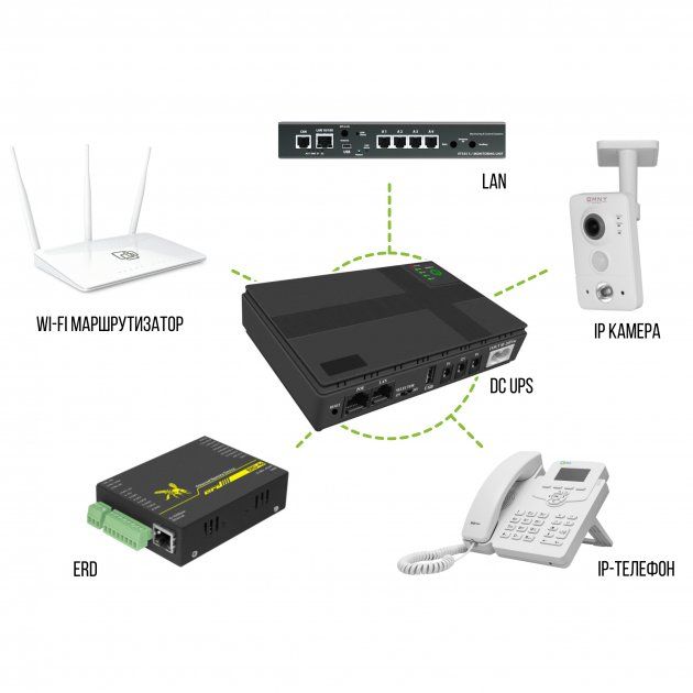 - Обеспечивает до 8 часов работы для роутера и медиаконвертера, что позволяет сохранить интернет-соединение даже при длительном отключении электроэнергии.