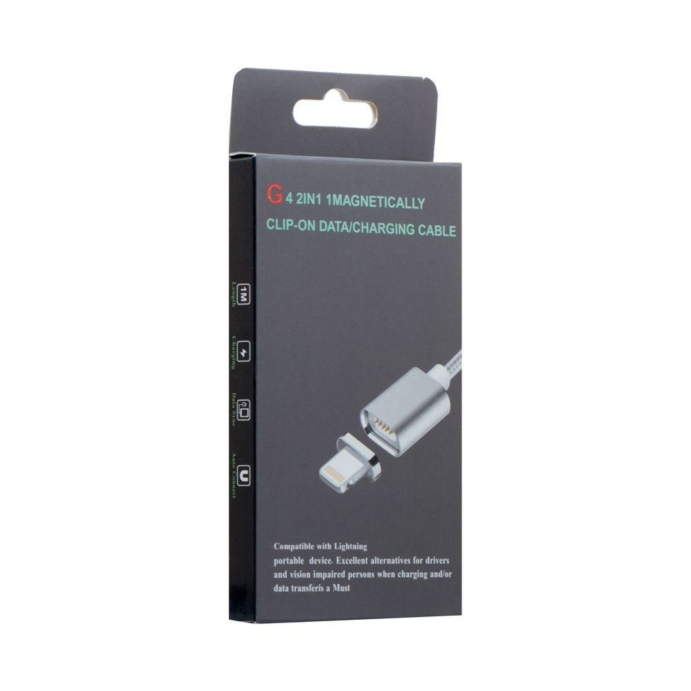 Магнитный USB кабель Clip-On с индикатором Lightning 1m серебристый
