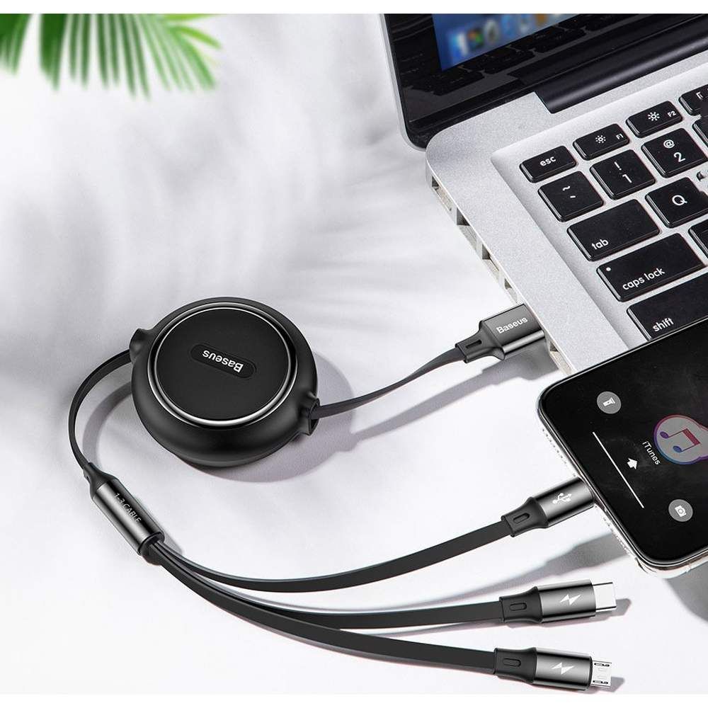 USB кабель Baseus Golden Loop, 3-в-1, Micro/Lightning/Type-C, 3.5A, 1.2м, черный