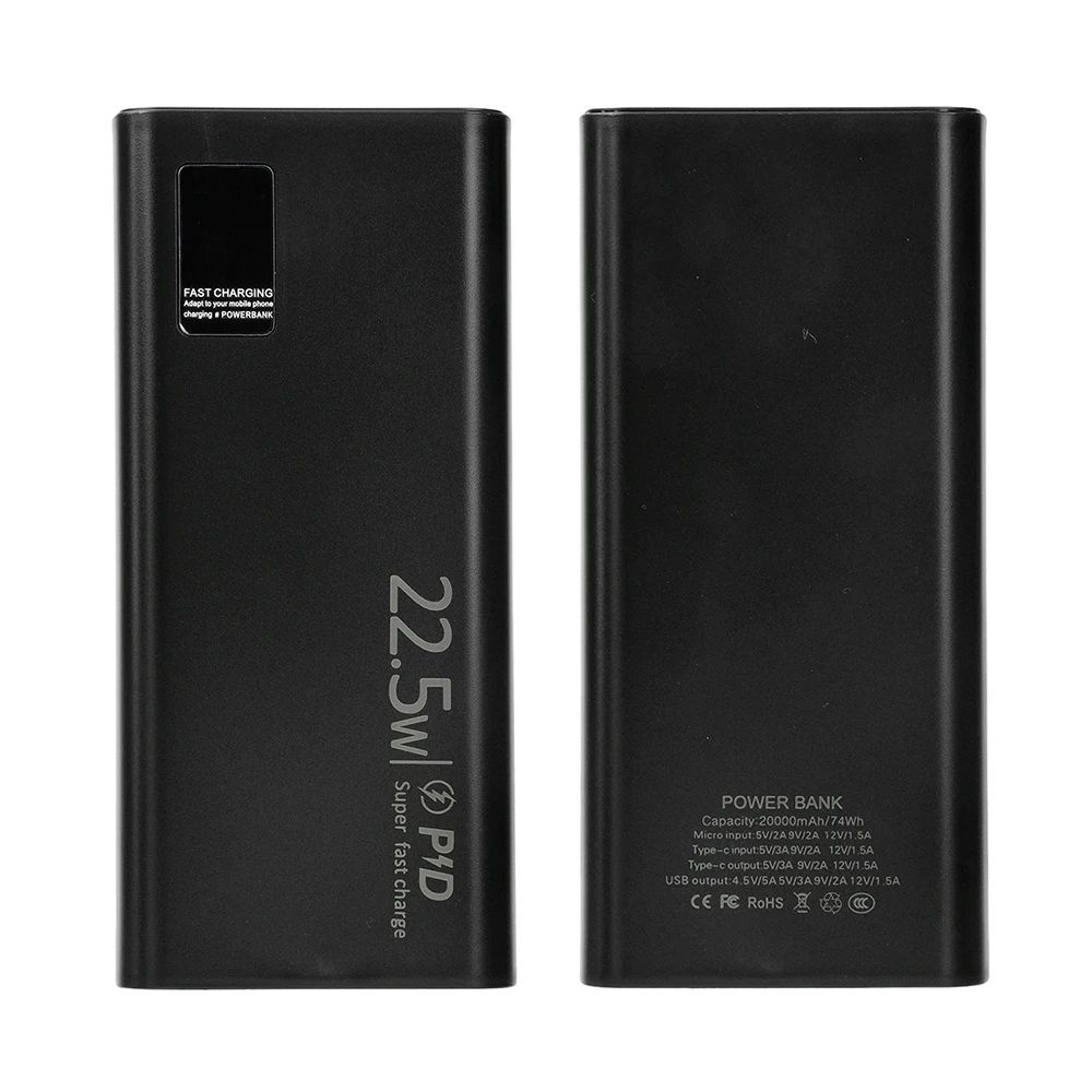 Корпус повербанка DIY Pro под пайку АКБ 2x1260110 до 20000mAh PD 22.5W Type-C, MicroUS, USB-A Black